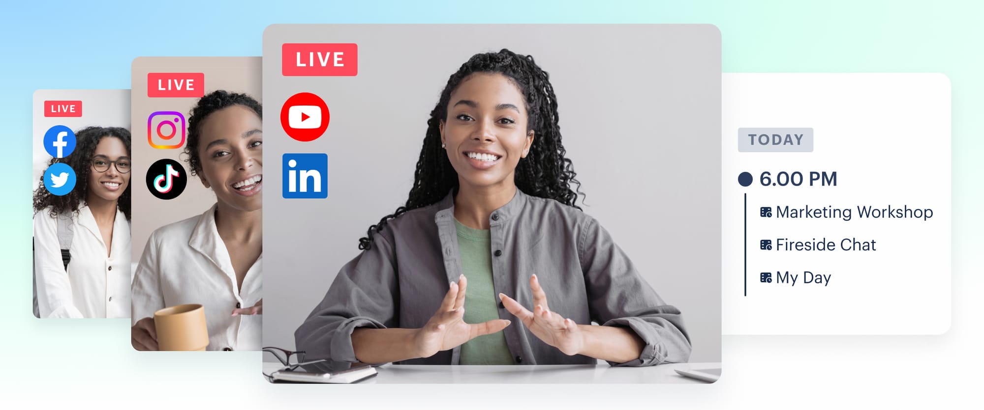 One way to reach a larger audience is to use Upload and Stream to schedule pre-recorded videos alongside live events on the same channel. Your viewers can choose which event they want to tune into. The best part is, if your concurrent event is pre-recorded, you won’t even need any additional producers or equipment.