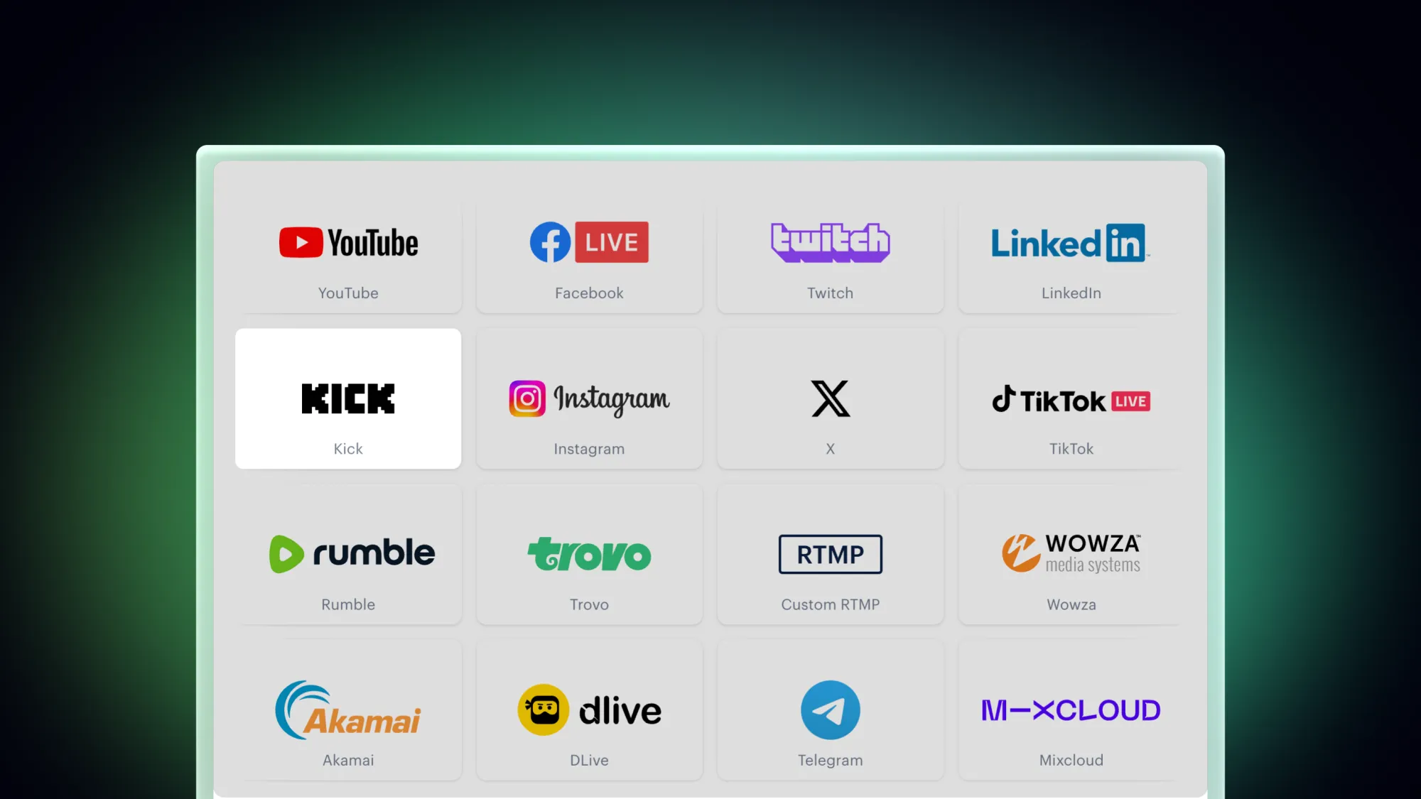 - Multistreaming capabilities: Expand your reach on Kick and beyond by simulcasting to multiple streaming platforms at the same time.