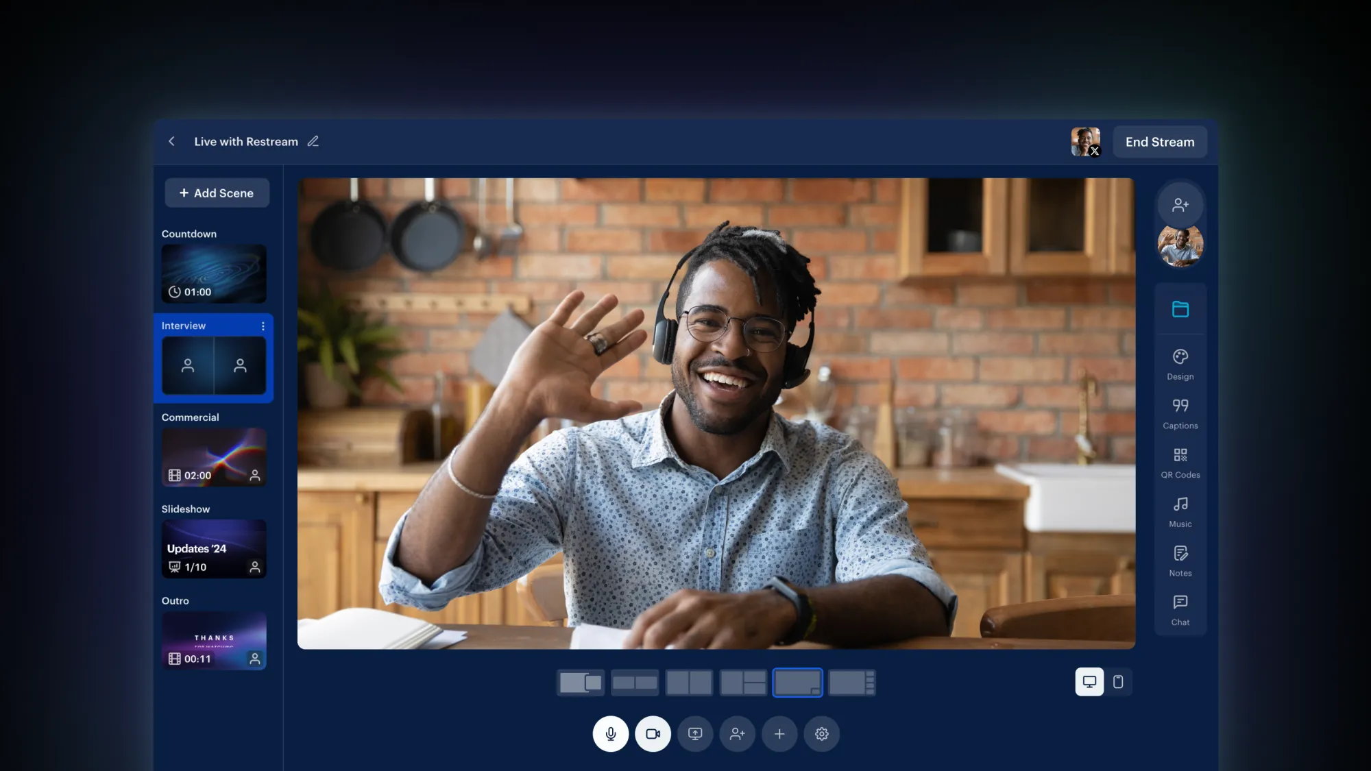- Script and notes: Integrate internal stream notes in Restream Studio to easily follow your script and key talking points.