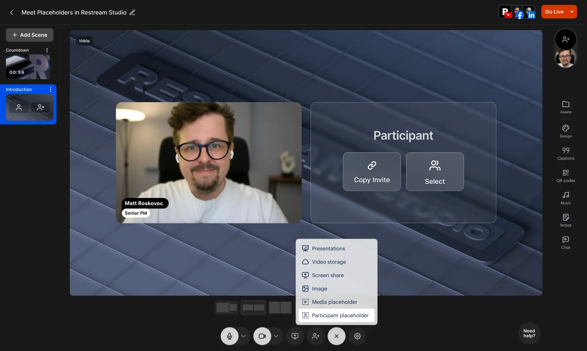 Tip: When your guests join the stream, you can assign them to different scenes — they’ll automatically fill the placeholders you’ve prepared for them.