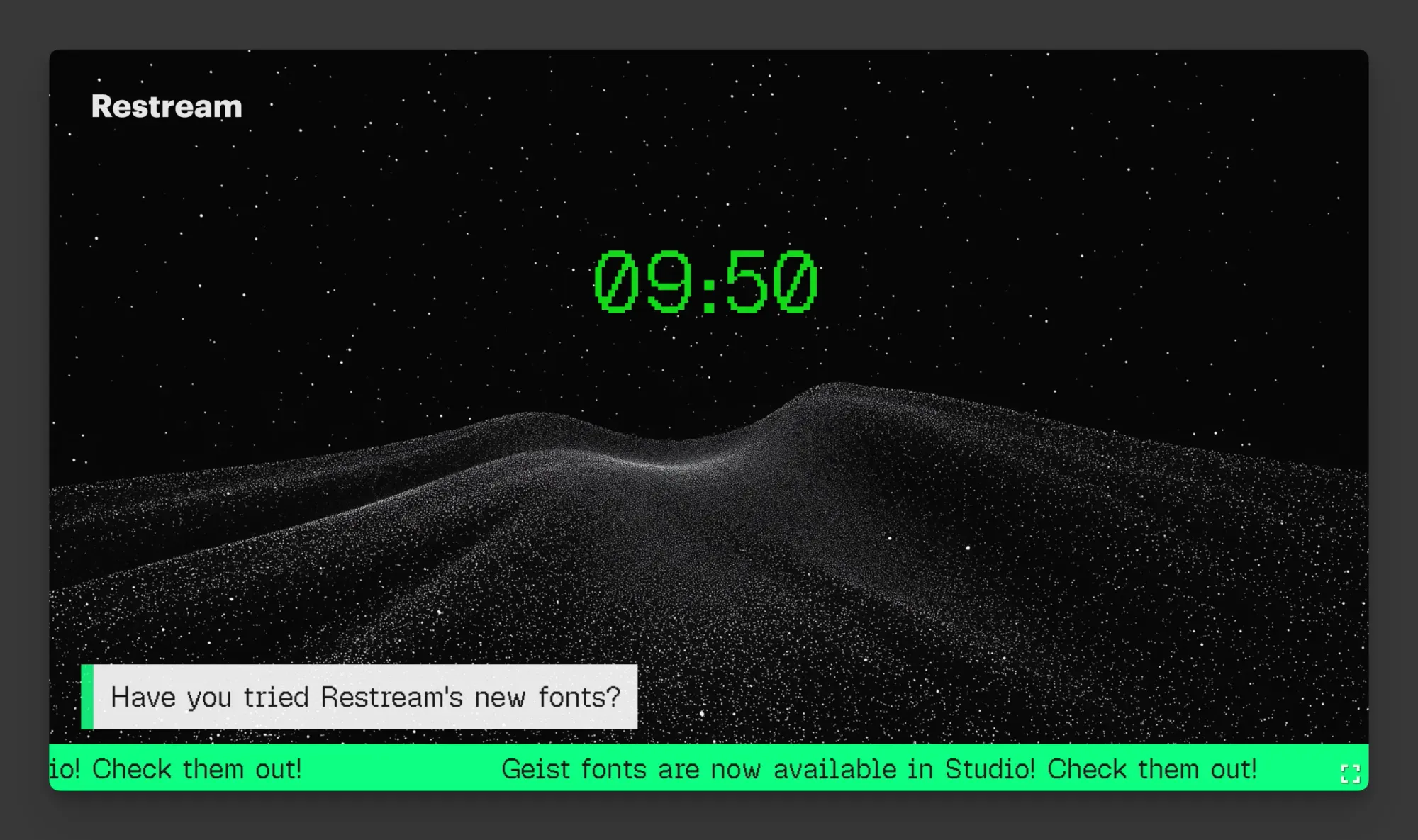 Try the new Geist font in your captions, tickers and countdown timer to create a clean and modern look for your broadcasts.