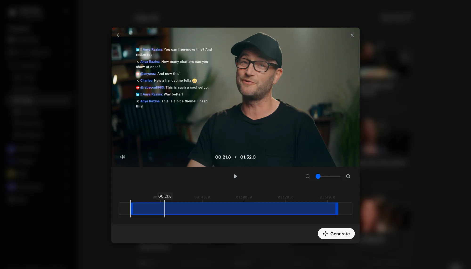Replay and learn — Watch your stream recording alongside chat activity and review the transcript to revisit key moments.