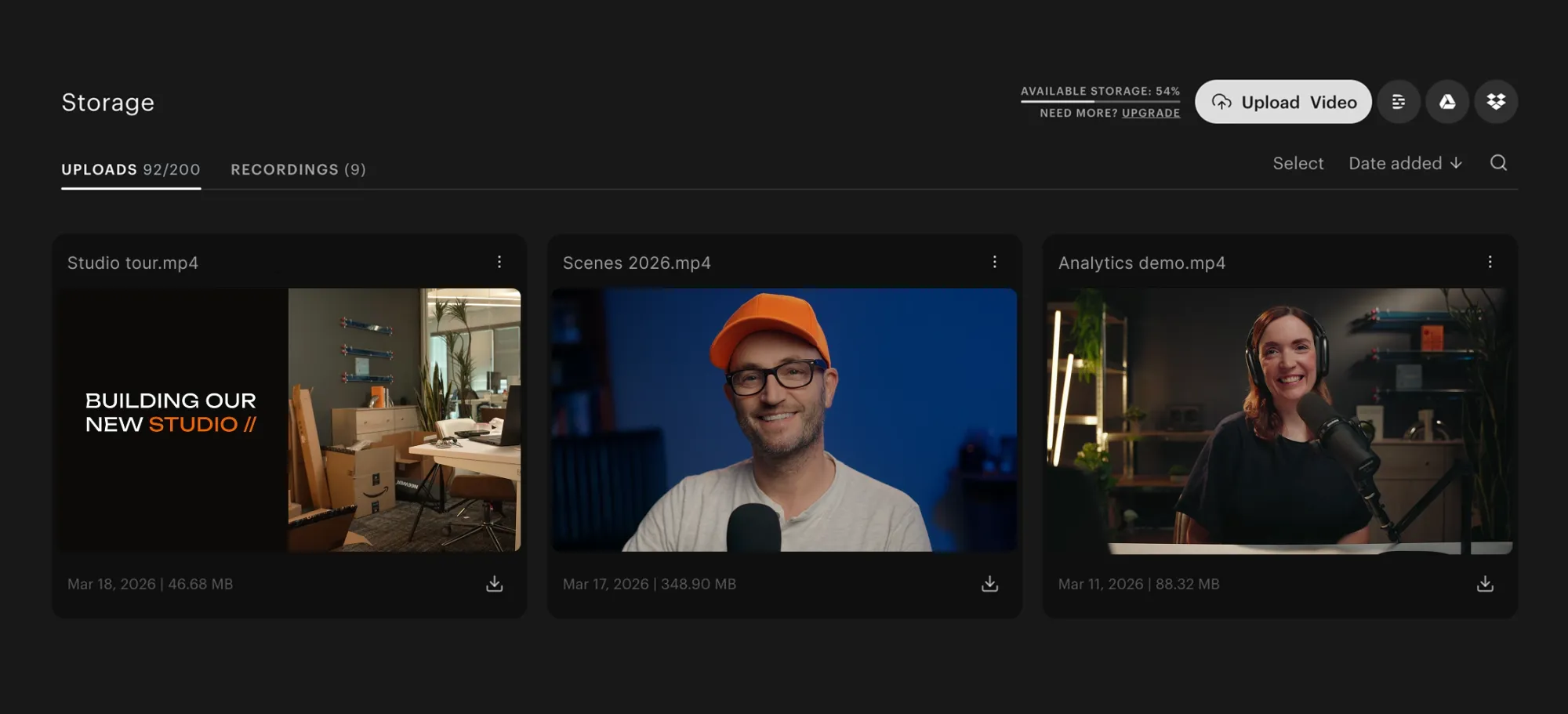 Storage got a full refresh — manage your stream recordings and video uploads faster than ever.