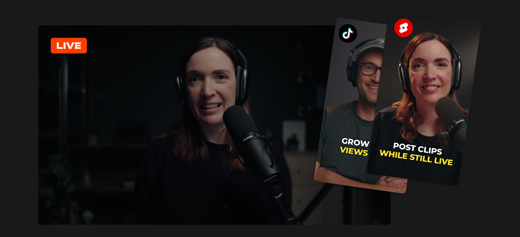 Live Clipping generates short-form clips in real-time — so you can share highlights to social media while you're still on air. Clips appear progressively in your project, ready to download or share before your stream ends.